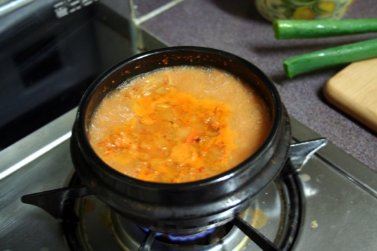 청국장은 뚝배기에 은근하게 끓여주는게 좋잖아요.. ^^