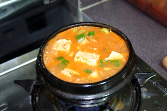 간 맞춘 다음에 두부 듬뿍 넣고 한번 바글 바글 끓인 다음에..